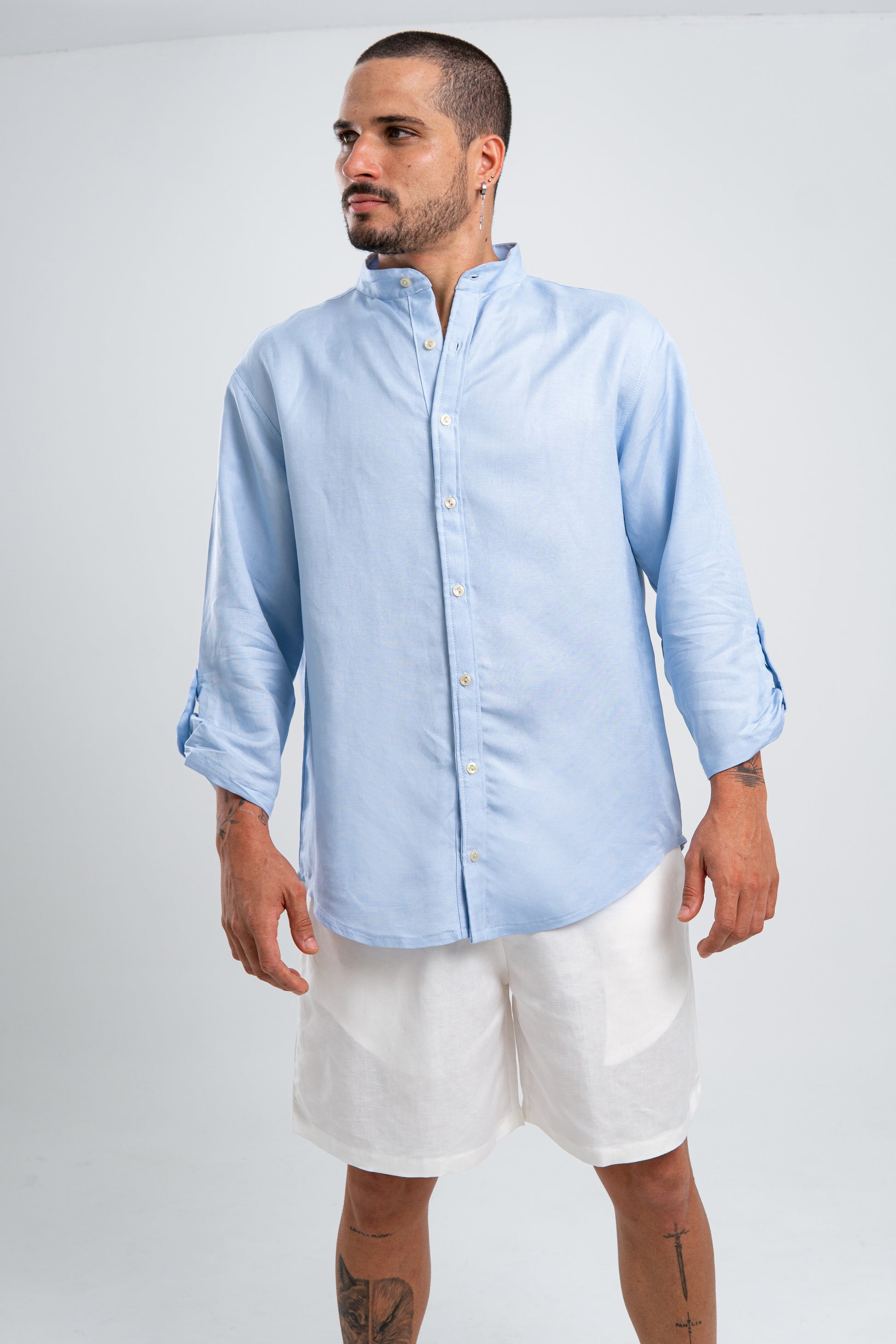 3/4 sleeve T-shirt made with 100% best quality linen, crafted with impeccable attention to detail. And to add a touch of sophistication, we can include a golden plated medal on the back.